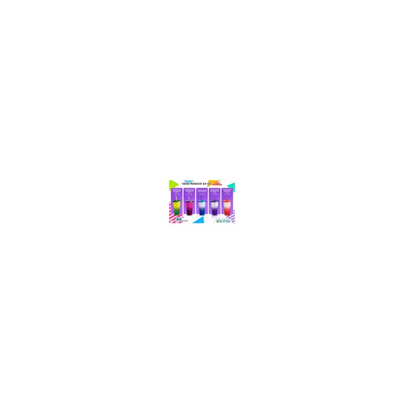vaso plástico reutilizable mágico de color natural se transforma a color morado con el líquido frío con capacidad de 24 oz o 709 ml con tapa morado.